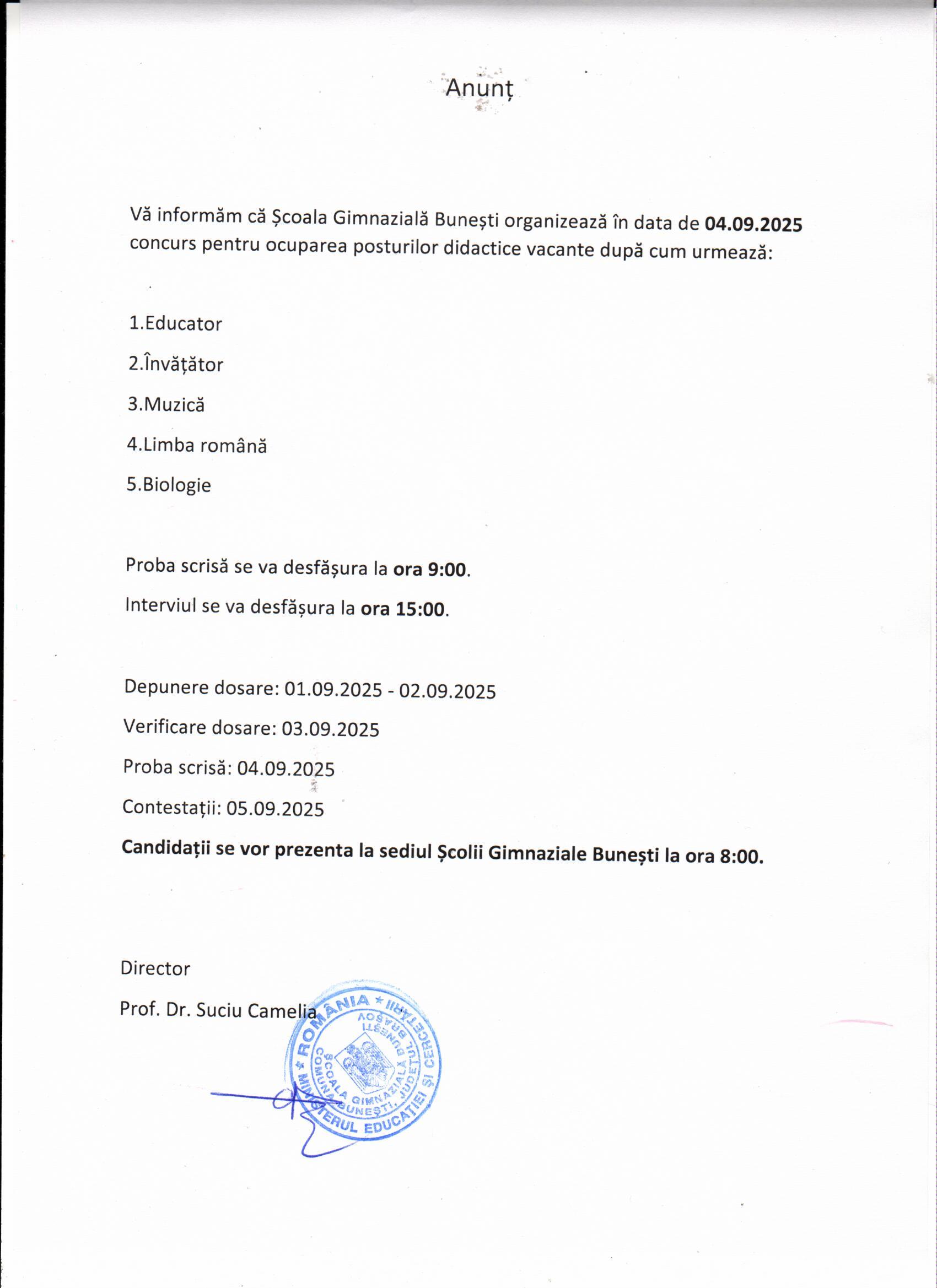 COMPARTIMENT/STRUCTURĂ: Şcoala Gimnazială Buneşti